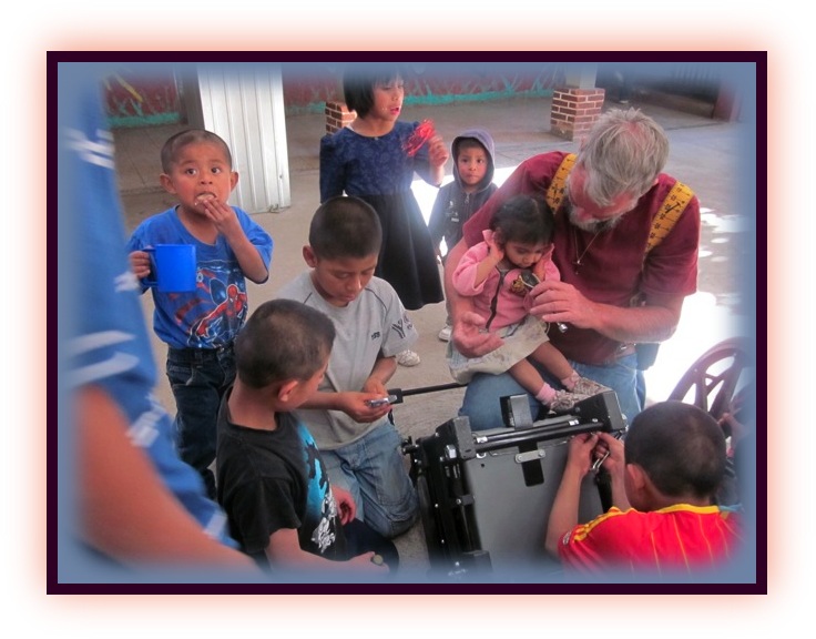 The seating began with Kevin and Fernando starting work on the chair, but soon many of the children gathered around wanting to help. Dick patiently instructed them, giving each some small part in the process, even if it was only to hold a screwdriver or turn a wrench. He really seems to "come alive" during these times, though I don't know how he does it. The number of kids helping would drive me to distraction, but he has infinite patience with them. When the seat was ready, it was truly a celebration for the whole group, and almost everyone got into the act. Even the littlest ones got their share of attention, and anyone who could took turns pushing Miguel around in his new chair, as he grinned ear to ear.